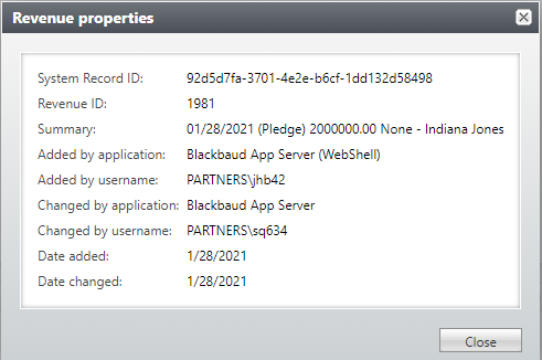 Mass General Brigham has customized a Revenue Properties view accessible from the explorer bar when you’re looking at a transaction. This shows the name of the user who entered the transaction, the date it was entered and more.